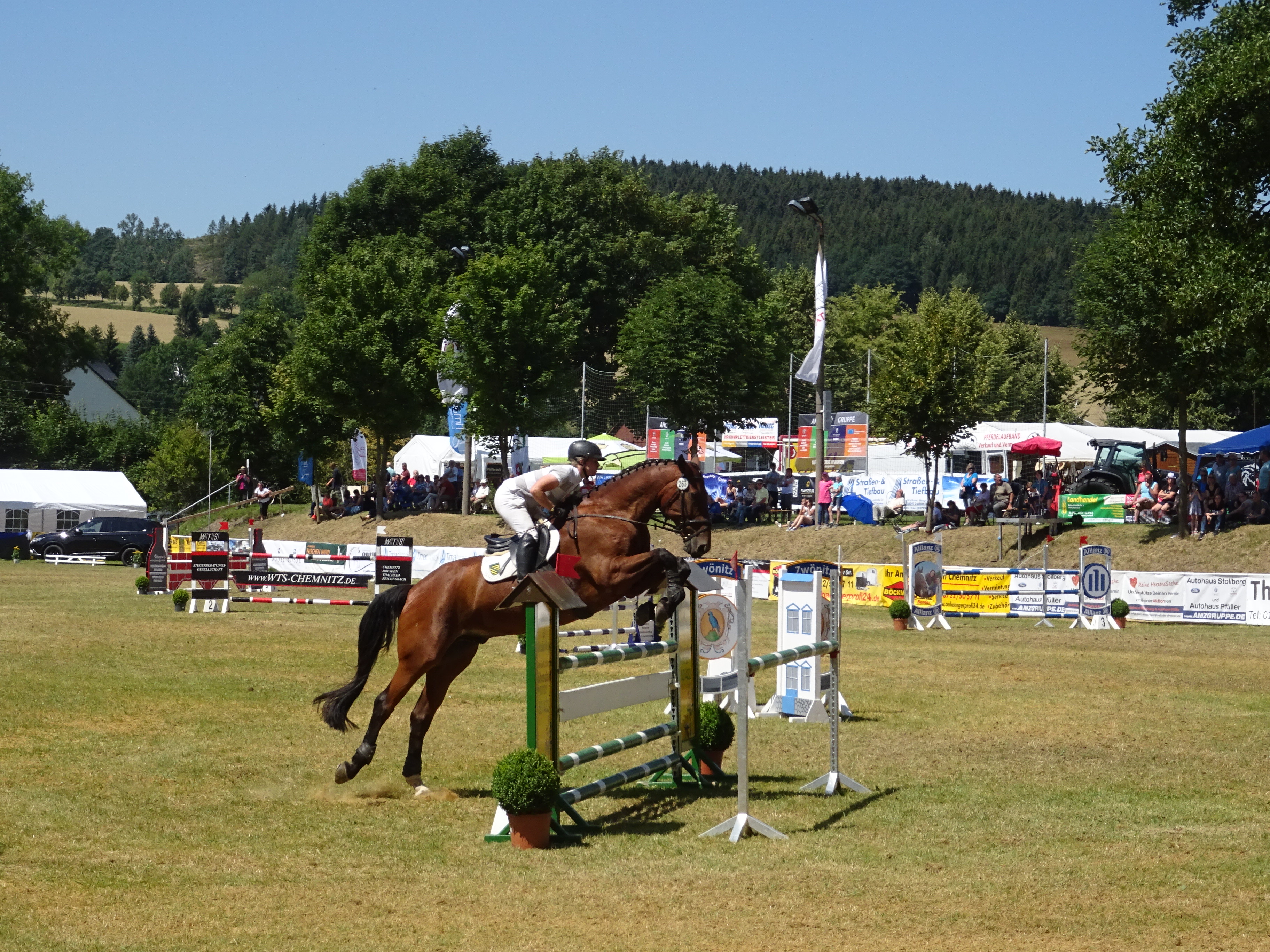 Beim Reit- und Springturnier 2018 waren wiederum Springprüfungen bis zur Klasse S** und Dressurprüfungen bis zur Klasse M** ausgeschrieben. Insgesamt waren 350 Reiter aus Sachsen, Thüringen, Bayern, Sachsen-Anhalt und Brandenburg auf der Anlage in Dorfchemnitz am Start. Erstmals wurde durch den Reit- und Fahrverein ein Kinderbauernmarkt mit interessanten Angeboten zu heimischen Produkten, Steine schleifen, Filzen, Fahrgeschäften und Kutschfahrten angeboten.